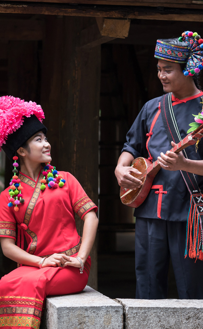 傣族人口約107萬人,主要分布在云南的德宏傣族景頗族自治州、西雙版納傣族自治州及瀾滄江流域的河谷壩子區(qū)域。傣族寨是進(jìn)入民族村的第一個村寨,占地面積27畝,三面環(huán)水,綠樹掩映。一幢幢“干欄式”傣家竹樓,通過蜿延的紅砂石小徑聯(lián)向肅穆的緬寺。巍峨壯觀的白塔,精巧玲瓏的風(fēng)雨橋,以及風(fēng)雨亭、水井、鐘亭等建筑充滿著傣家的濃郁風(fēng)情,是傣寨真實(shí)的民間景觀再現(xiàn)。一年一度的“潑水節(jié)”期間,這里都有活潑歡快的“象腳鼓舞...